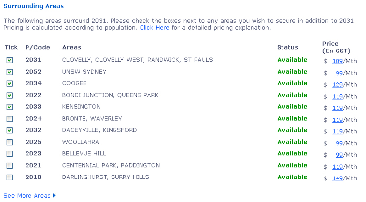 provider may choose to secure numerous postcodes that they service.